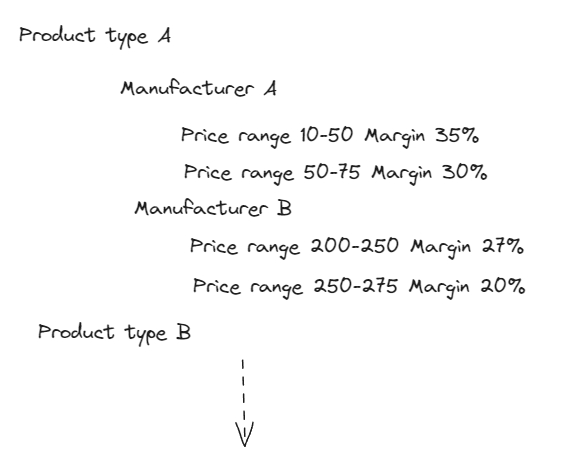 Základní myšlenka strategie na základě cenových hladin produktů je taková, že sortiment bude rozdělen zpravidla dle nákupní ceny produktů do kategorií a dále dle kategorizačních atributů jako jsou produkt typ, výrobce a další. Tyto kategorie pak budou mít nastavenou povolenou minimální marži, kterou mohou produkty dosahovat. V některých případech je také omezena horní hranice marže.