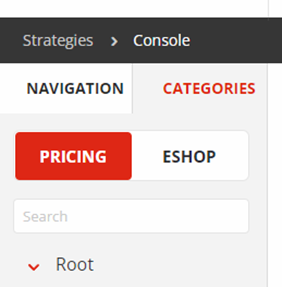 Zde jsou kategorie, ve kterých se ručně, nebo dle pravidel umísťují produkty. Na adresáře jsou aplikovány rozdílné cenové strategie. Standardně jsou k dispozici adresáře jako Balanced, Sale, BestPrice a Manual Repricing. V tomto stromu je možné kategorie zakládat, měnit popis, mazat.