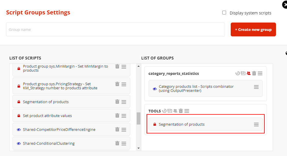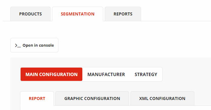 Ve skriptové konzoli otevřete seznam scriptů a vyberte script „Segmentation of products“. Konzole nabízí oproti přístupu přes TAB reports možnost vytvářet nové konfigurace a ty ukládat pro pozdější použití.