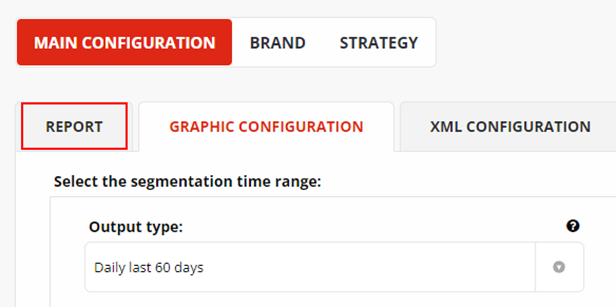 Po zobrazení reportu jsou k dispozici záložky jednotlivých konfigurací, které se vytvářejí přes konzoli. Zde v obrázku Main Configuration, Manufacturer a Strategy.
