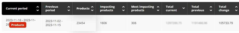 Most impacting products change – Změna hodnoty vybraných produktů